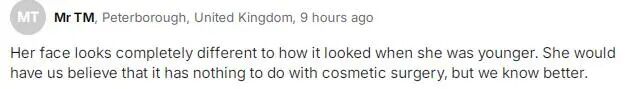 她的脸看起来和年轻时完全不一样了。她想让我们相信这与整容手术无关,但我们都清楚。