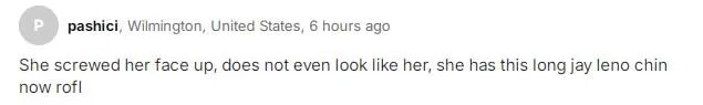 她搞砸了她的脸,甚至看起来都不像她了,她现在有了一个像杰·雷诺(美国脱口秀主持人)一样长的下巴